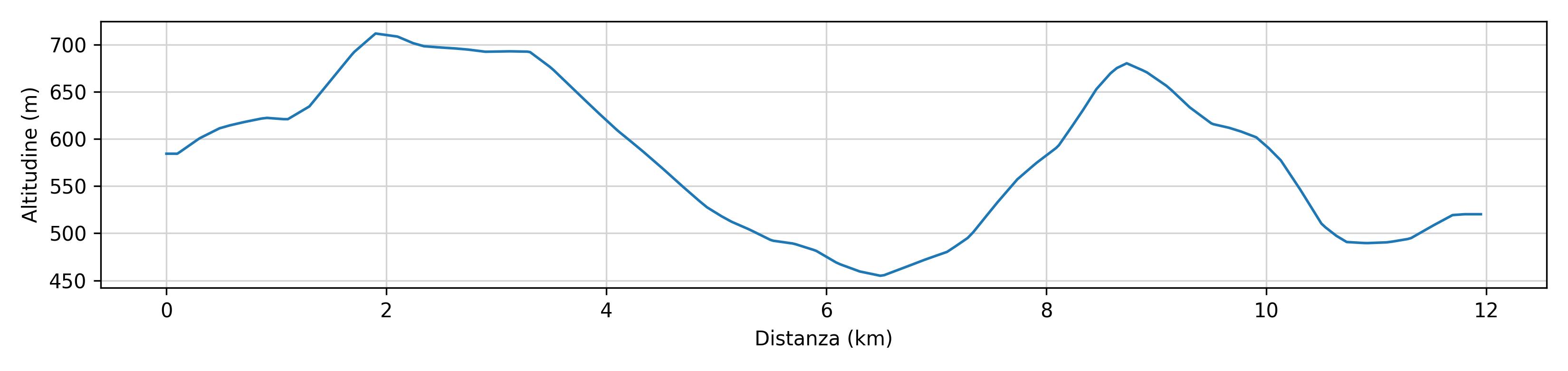 Dopo aver attraversato la parte alta del borgo, si percorre via Campo dei Fiori e si imbocca il sentiero CAI 244. Si prosegue per circa un chilometro e mezzo su strada asfaltata in salita, uscendo da Fossato. Successivamente, il tracciato diventa una comoda strada sterrata: si svolta a destra, sempre seguendo il sentiero 244, che scende con alcuni tornanti attraversando la Valle della Vena, fino a raggiungere la parte alta del piccolo borgo di Palazzo Mancinelli.